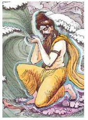 Lord Nityananda along with other devotees entered Jannagara and they witnessed the beauty of the tapovana(hermitage) where Jahnu Muni resided. Lord Nityananda said, “This island, known as Jahnudvipa, is non-different from Bhadravana of Vraja-mandala. At this place Jahnu Muni performed tapasya causing Lord Gauranga to appear in front of him in His golden form. Here Jahnu Muni used to chant his Gayatri mantra as the Bhagirathi River was flowing near his asrama. Once, the muni’s acamana cup and spoon fell into the powerful river and were carried away by the strong current of the Bhagirathi. Jahnu Muni was furious and drank the entire Ganga. Naturally King Bhagiratha was disturbed by this and thought, ‘Where did Ganga disappear to?’ He became very worried when he came to know that Jahnu Muni had drunk all the water of the Ganga. King Bhagiratha then worshiped Jahnu Muni for some time to please him. Being pleased with the King, Jahnu Muni cut his thigh and let Ganga flow out from his body. Since then her name has been Jahnavi and she became famous as the daughter of Jahnu Muni.” Somewhere else it has been mentioned that the Ganga flowed from sage Jahnu’s ear.